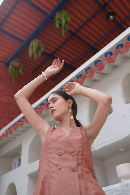 Brown Double Breasted Vest Co-ord Set