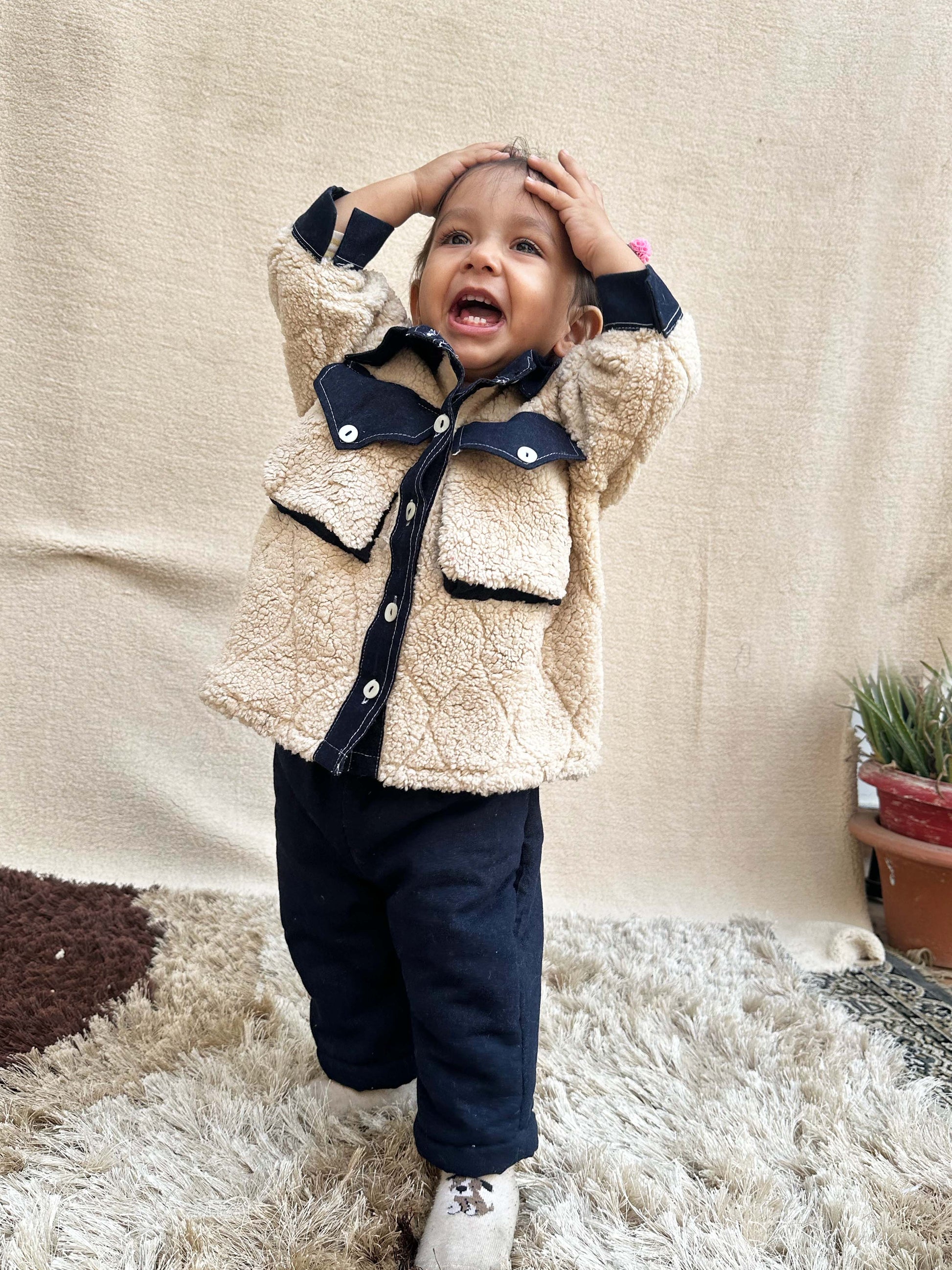 The perfect Winter co-ord! This Fleece Denim quilted co-ord set features a contrasting Denim cuffs and pockets with a denim pants, creating a stylish, breezy outfit perfect for cold-weather outings.