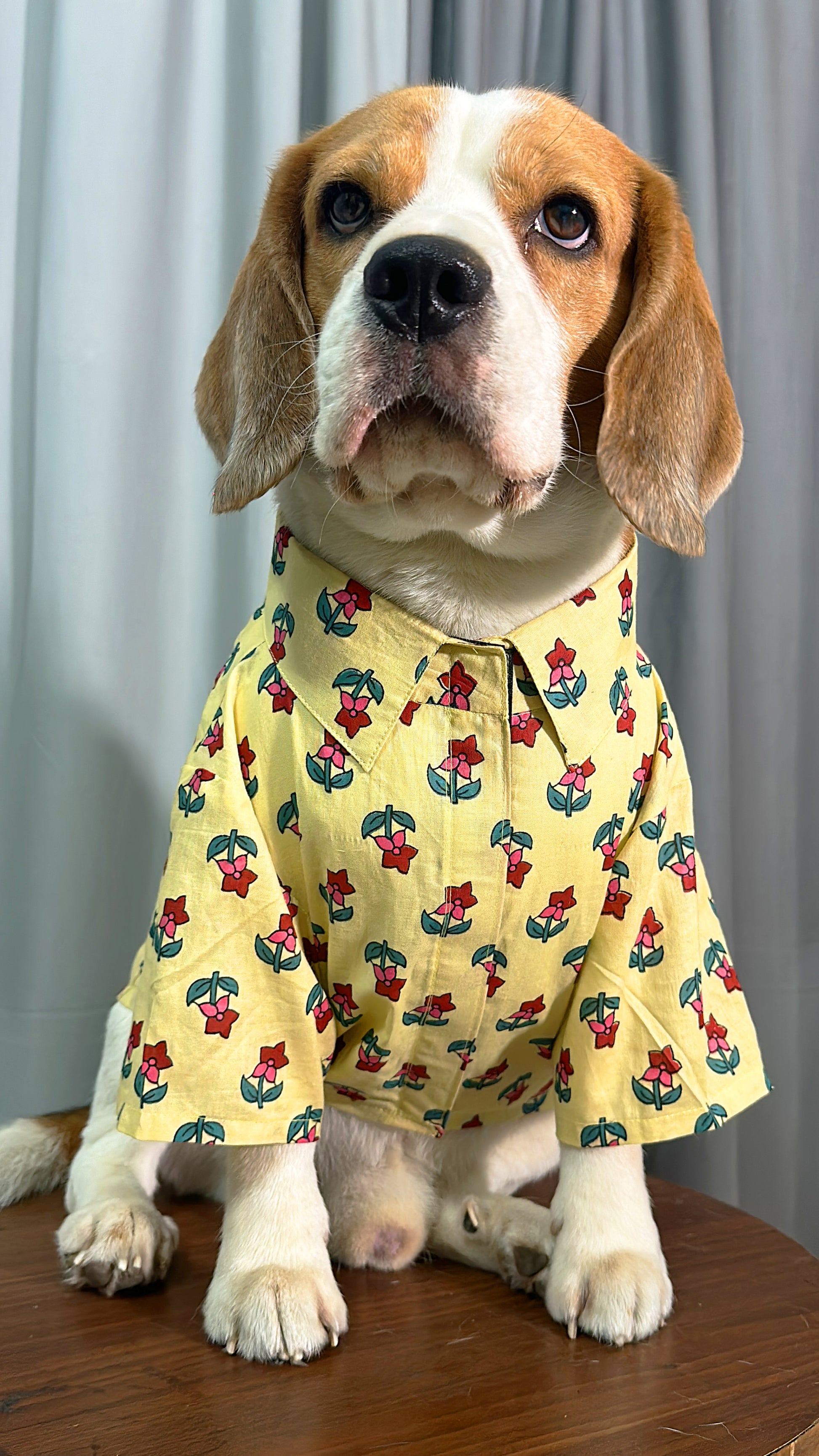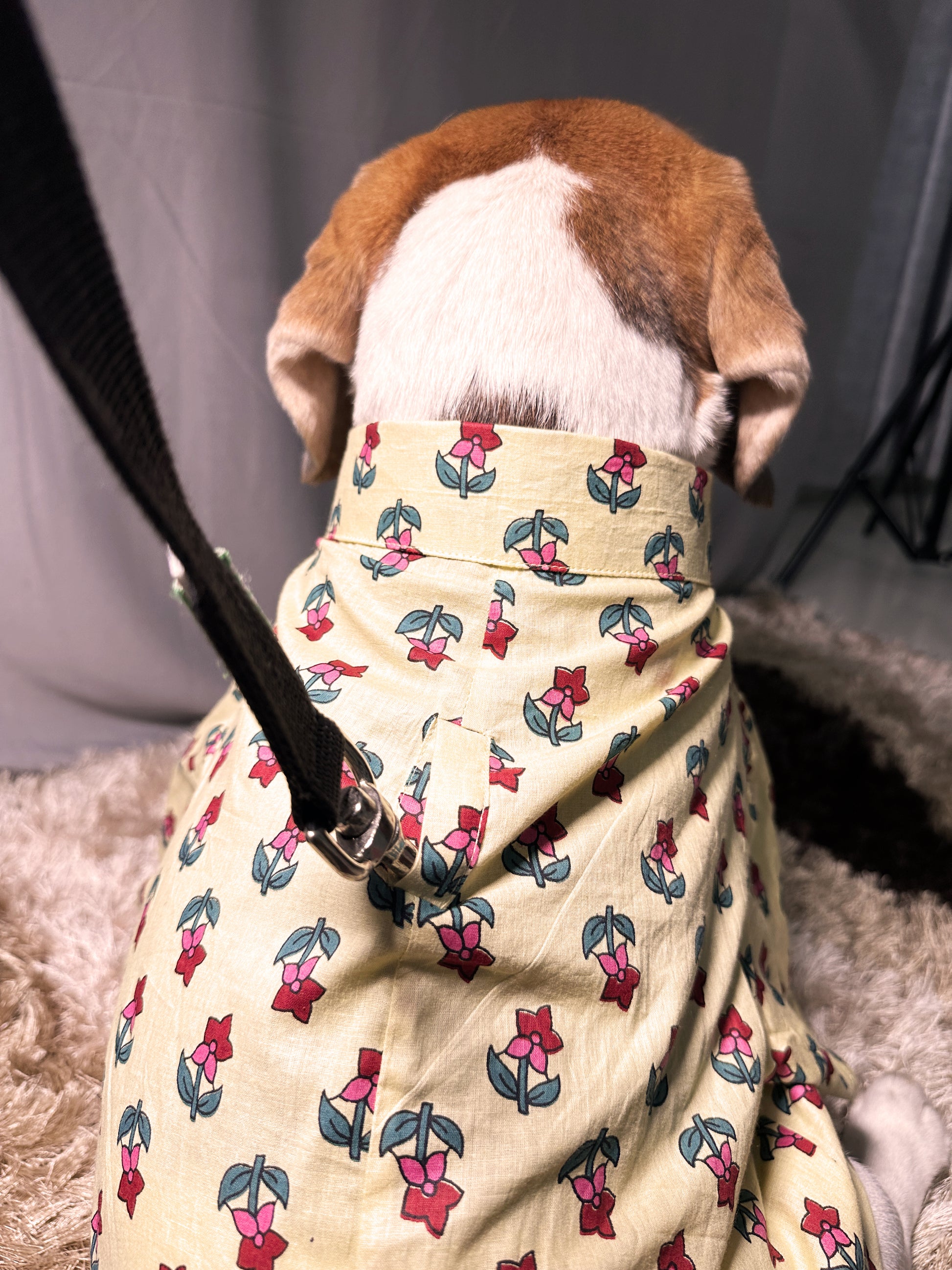 Our Beige Floral Kurta Shirt is a quintessentially Indian western style wear that combines style and functionality for your canine companion's festivities!