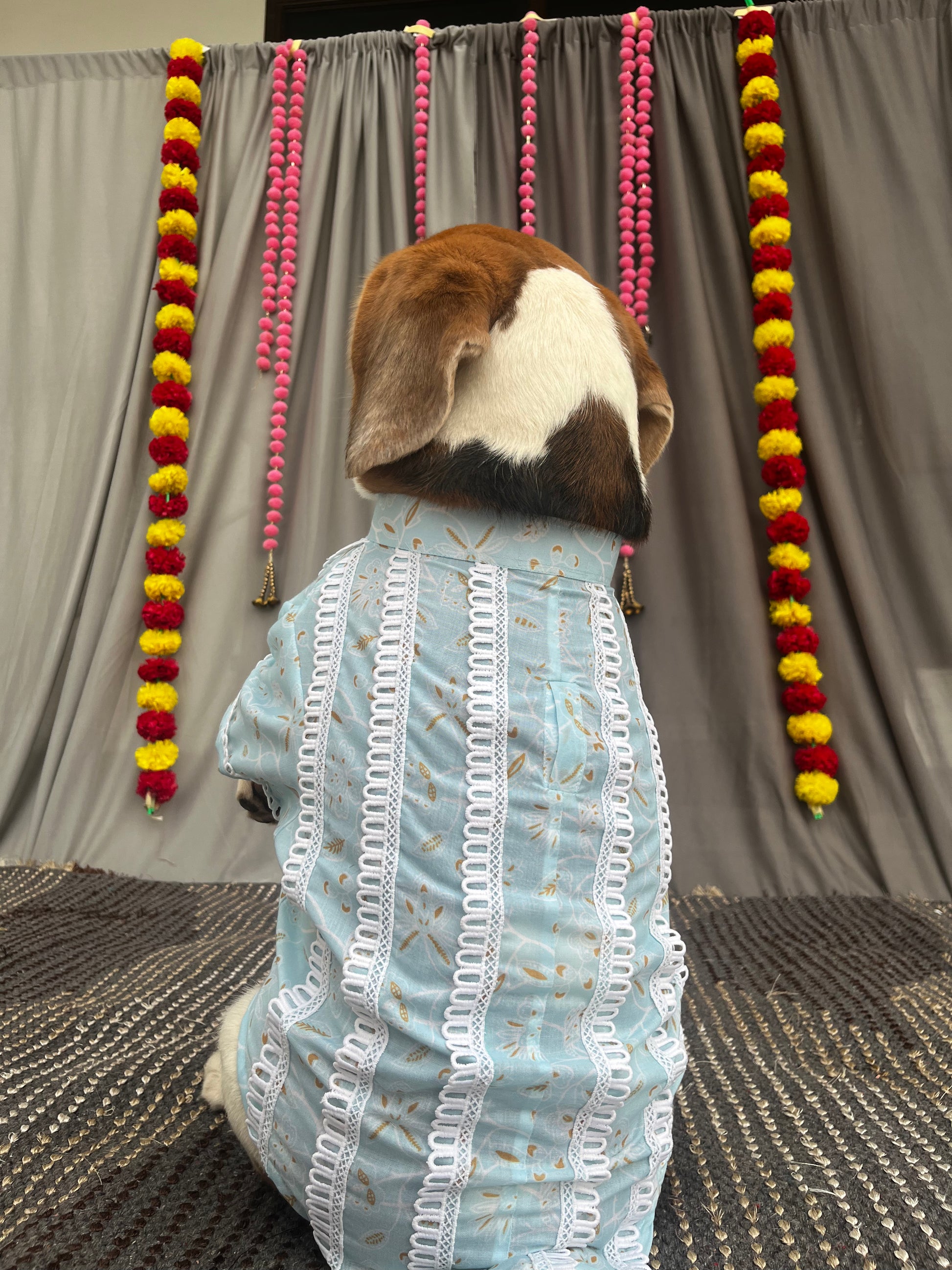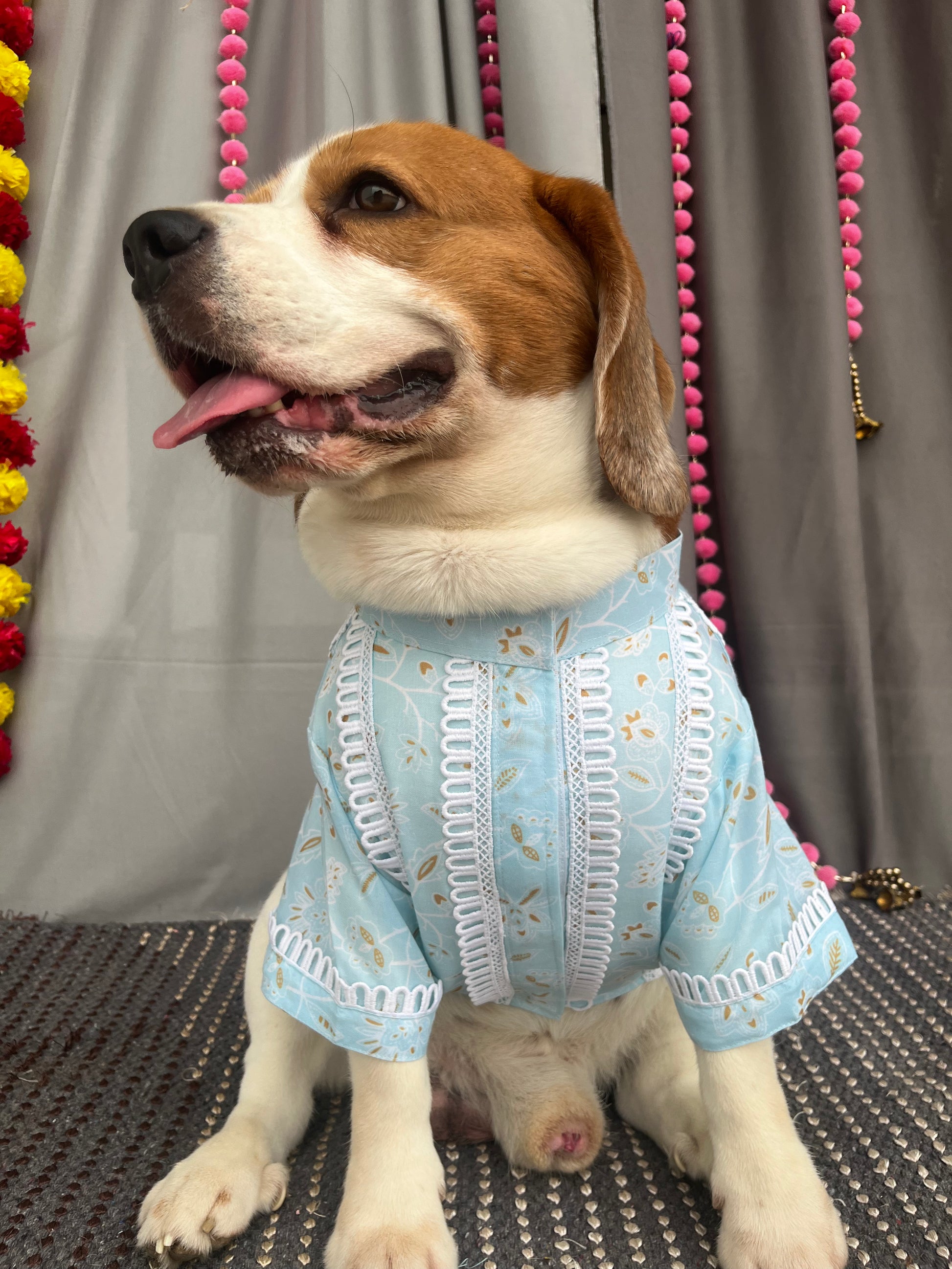 This combo includes a Kurta for Dog and an noddle strap kurta Co-ord set for baby