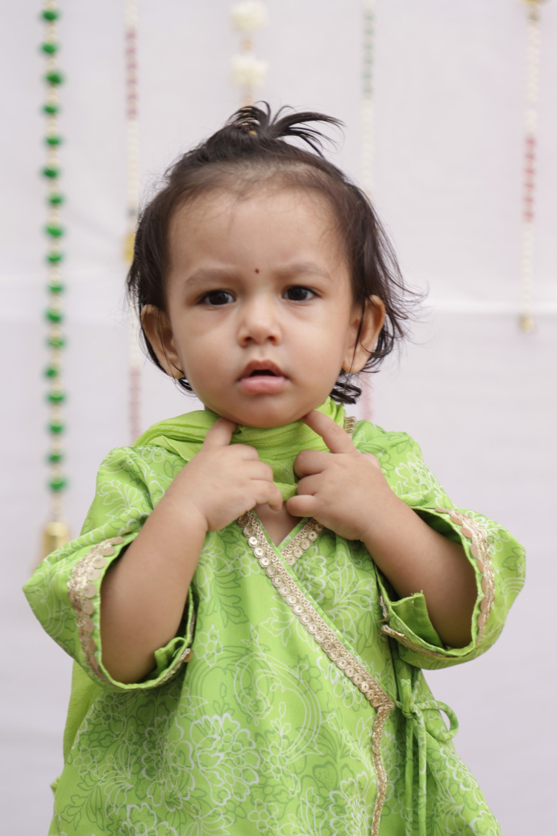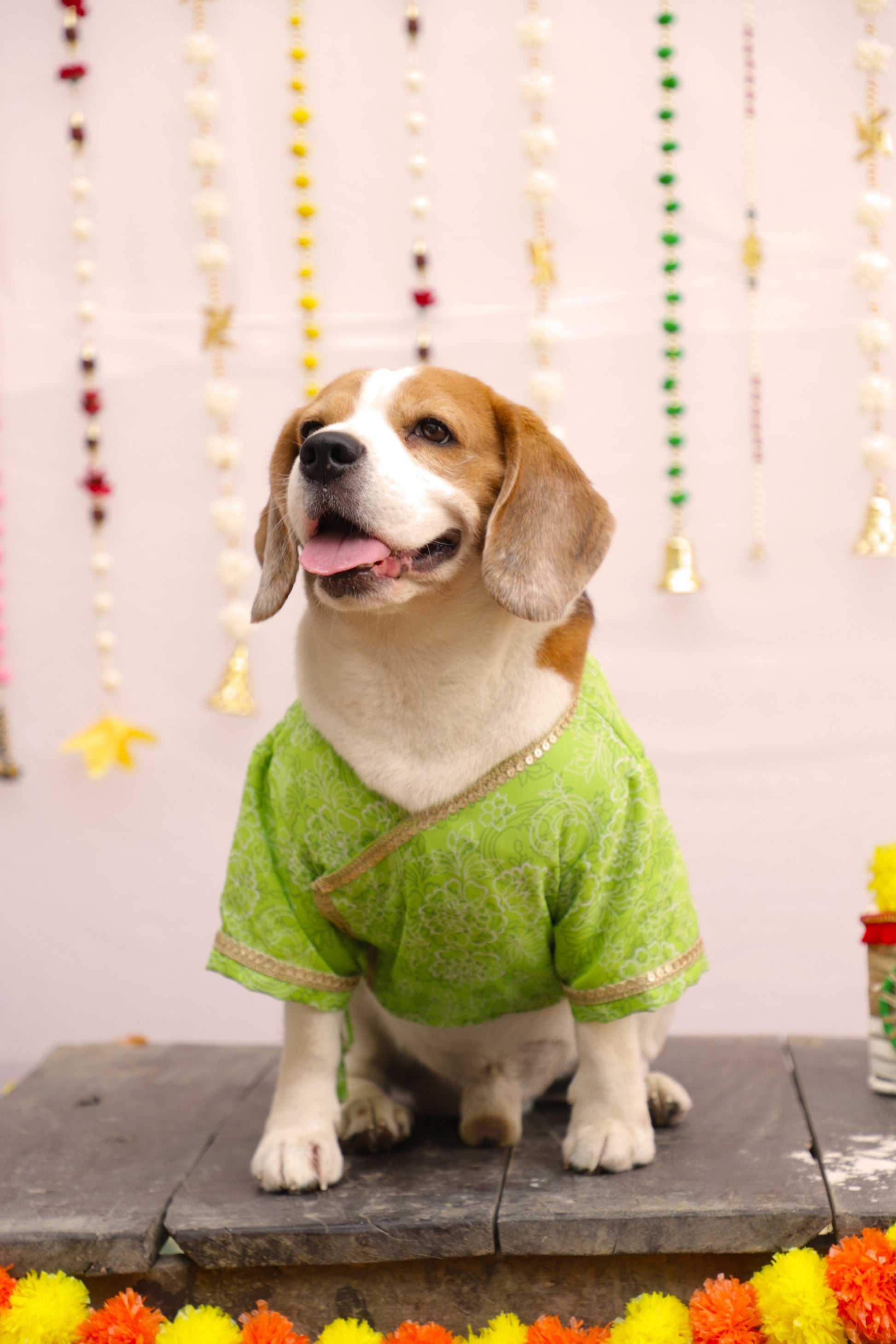 This combo includes a Green floral Angrakha Kurta for Dog and Angrakha Kurta set for baby.