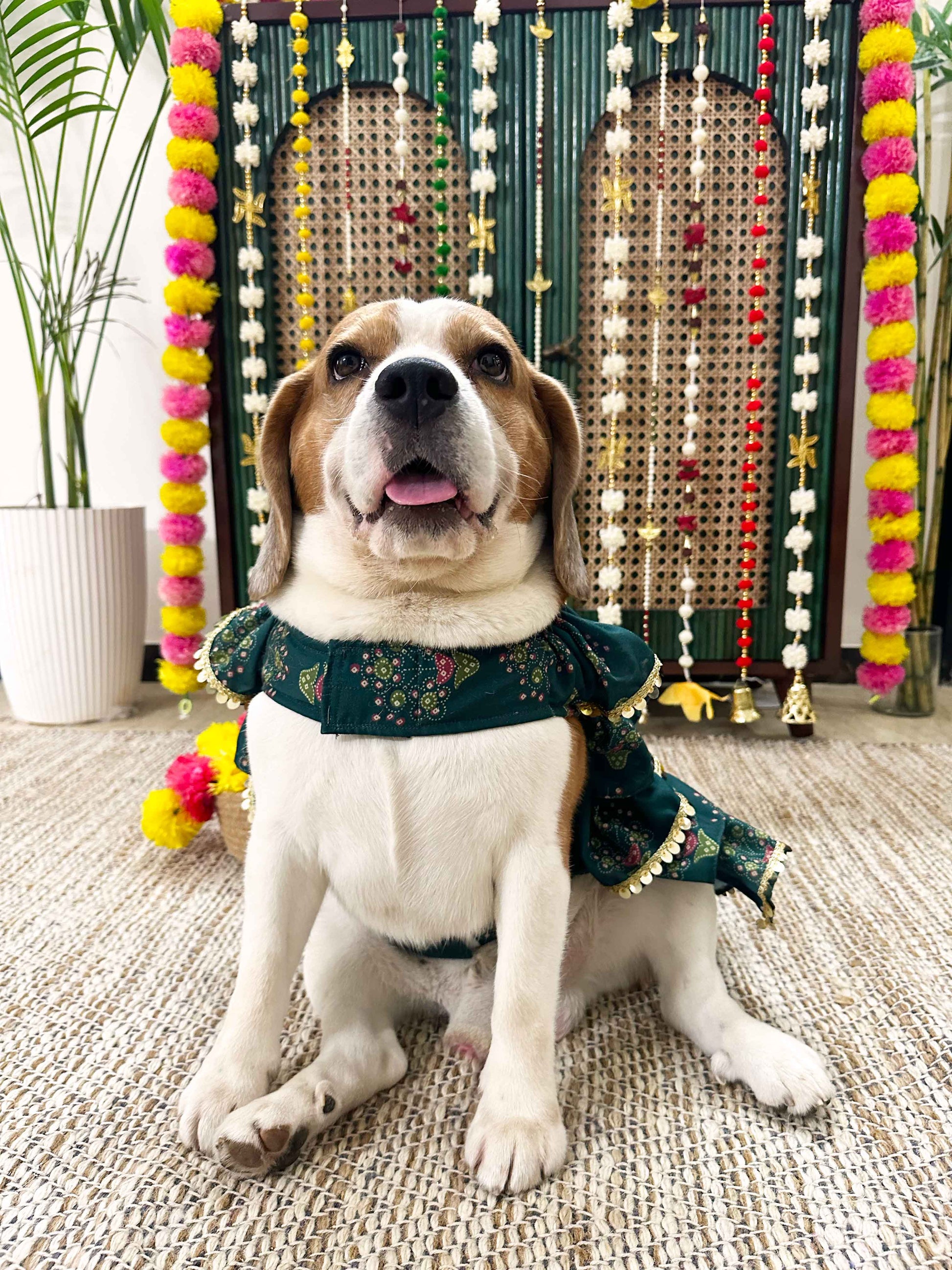 This Green Floral Ruffle Dress is a celebration of style, elegance, and tradition for your beloved furry friend! The set features a beautifully Floral print, adorned with tiered ruffles and lace details that add a touch of opulence to your pet's attire.