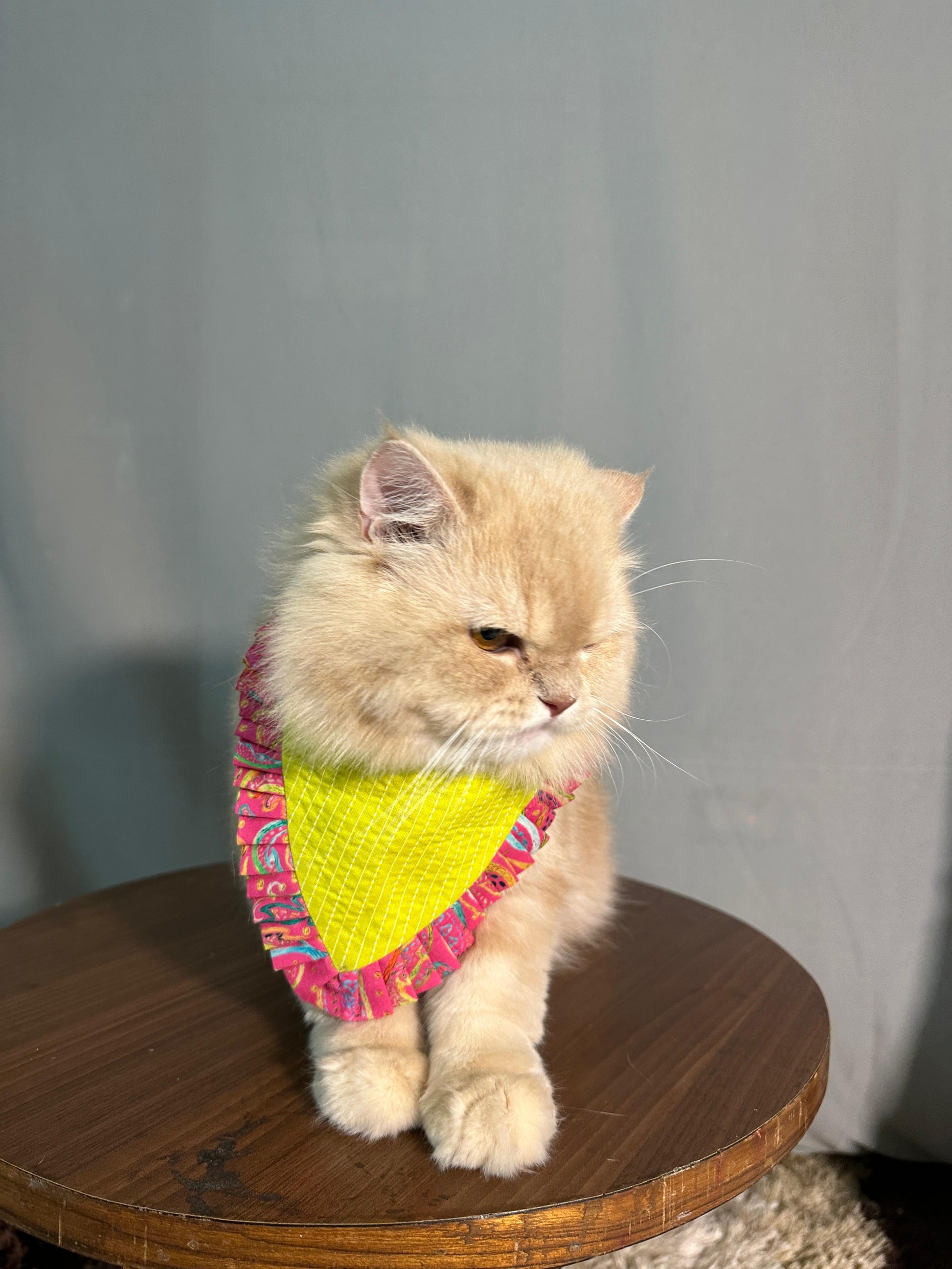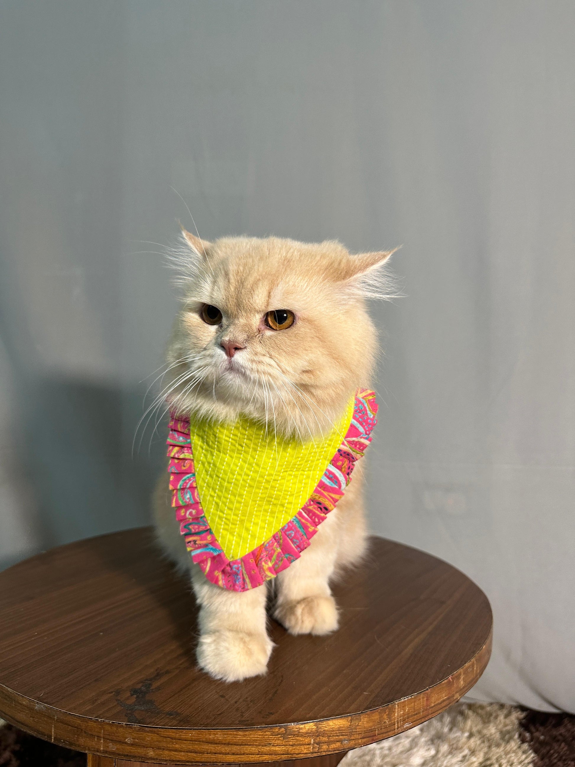 Introducing our unique Neon Lime Green bandana with ruffle for dog! Crafted with customised letter and ruffle details, this bandana ensures your pup stays comfortable and stylish throughout the day.