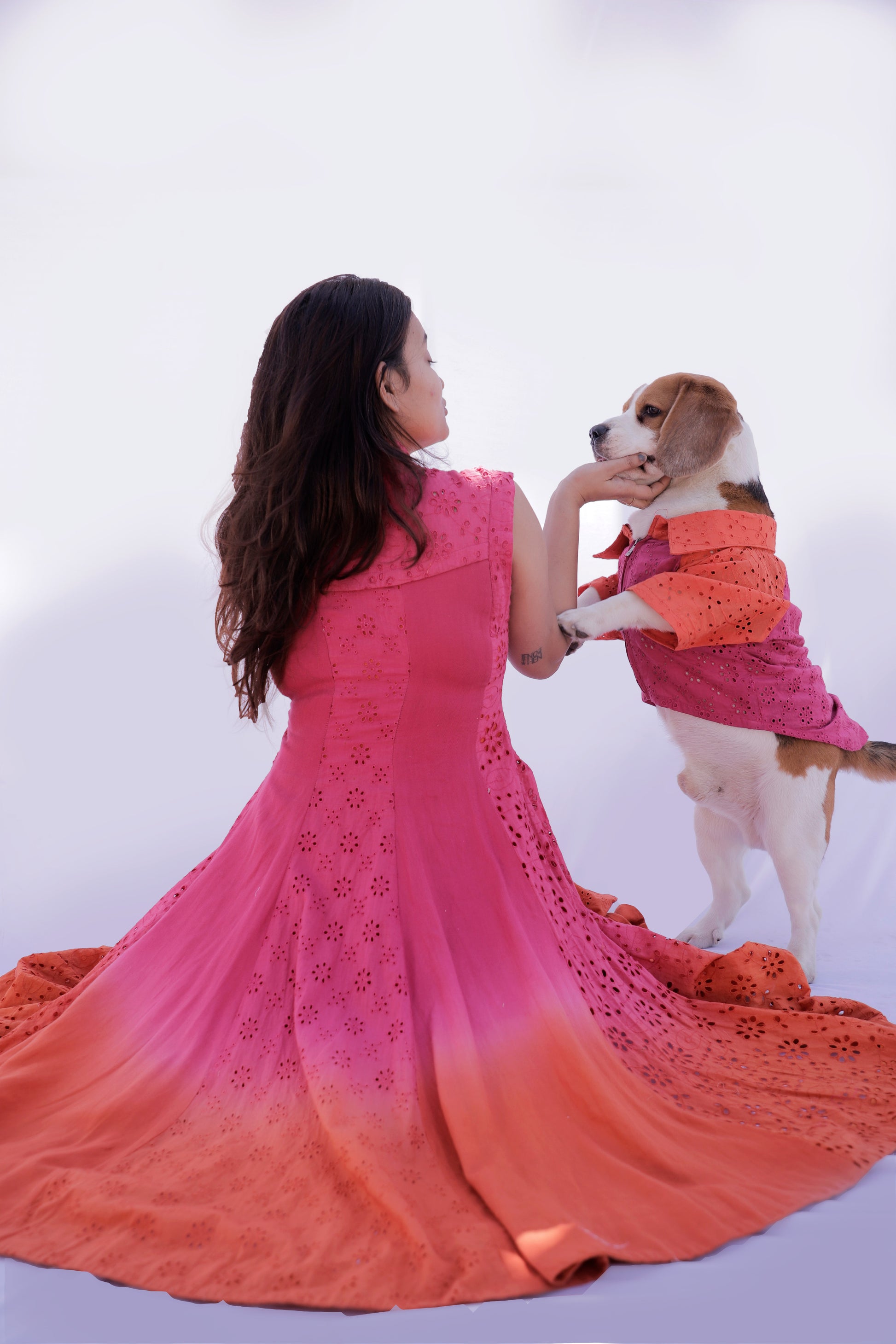 This combo includes Pink- orange ombre Dress and Dog ombre Shirt