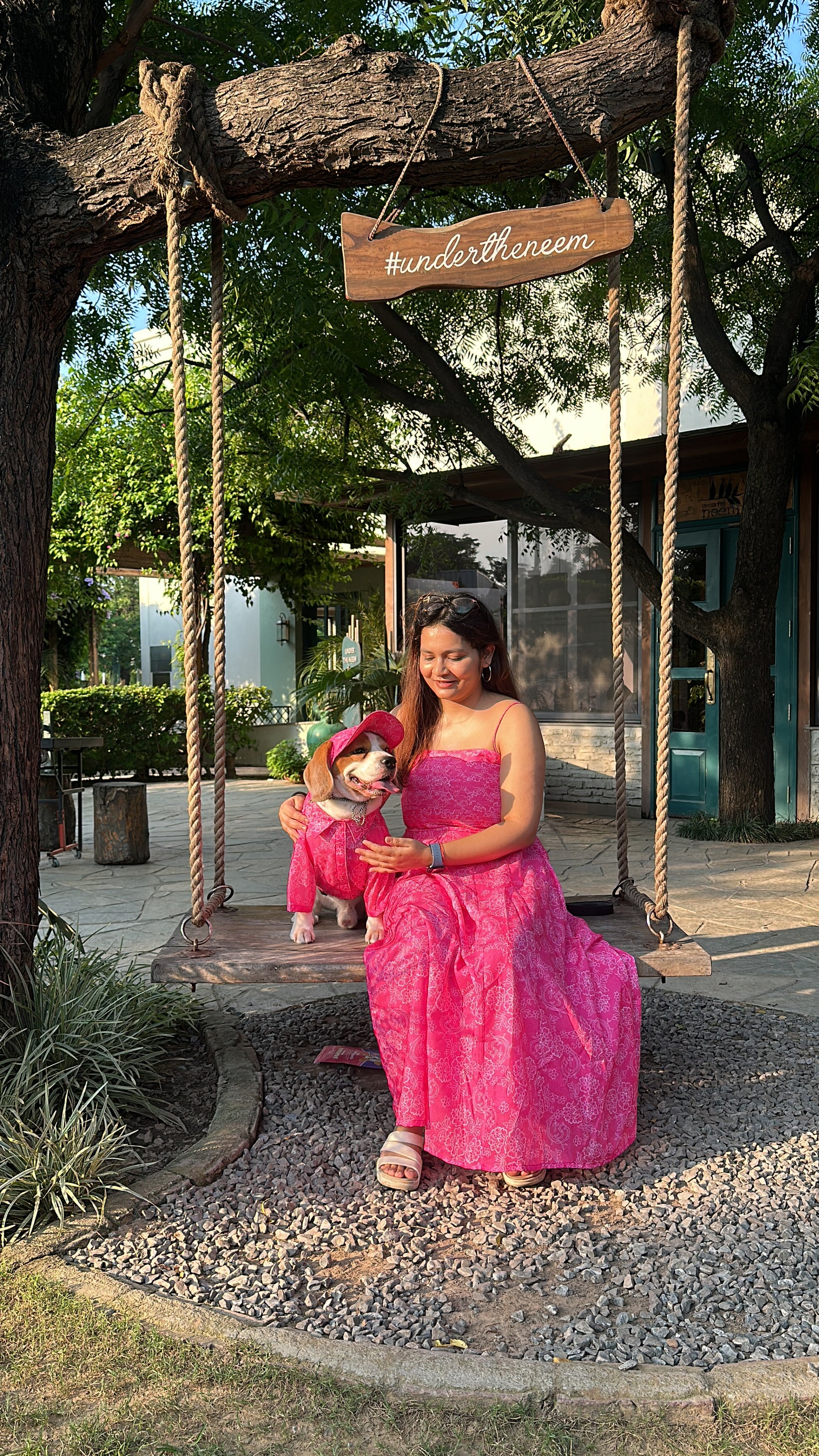 Introducing our vibrant and stylish Neon Pink Shirt with a matching cap for dogs- the contrasting textures and colours add depth and dimension to the design, ensuring that your canine companion stands out from the pack.