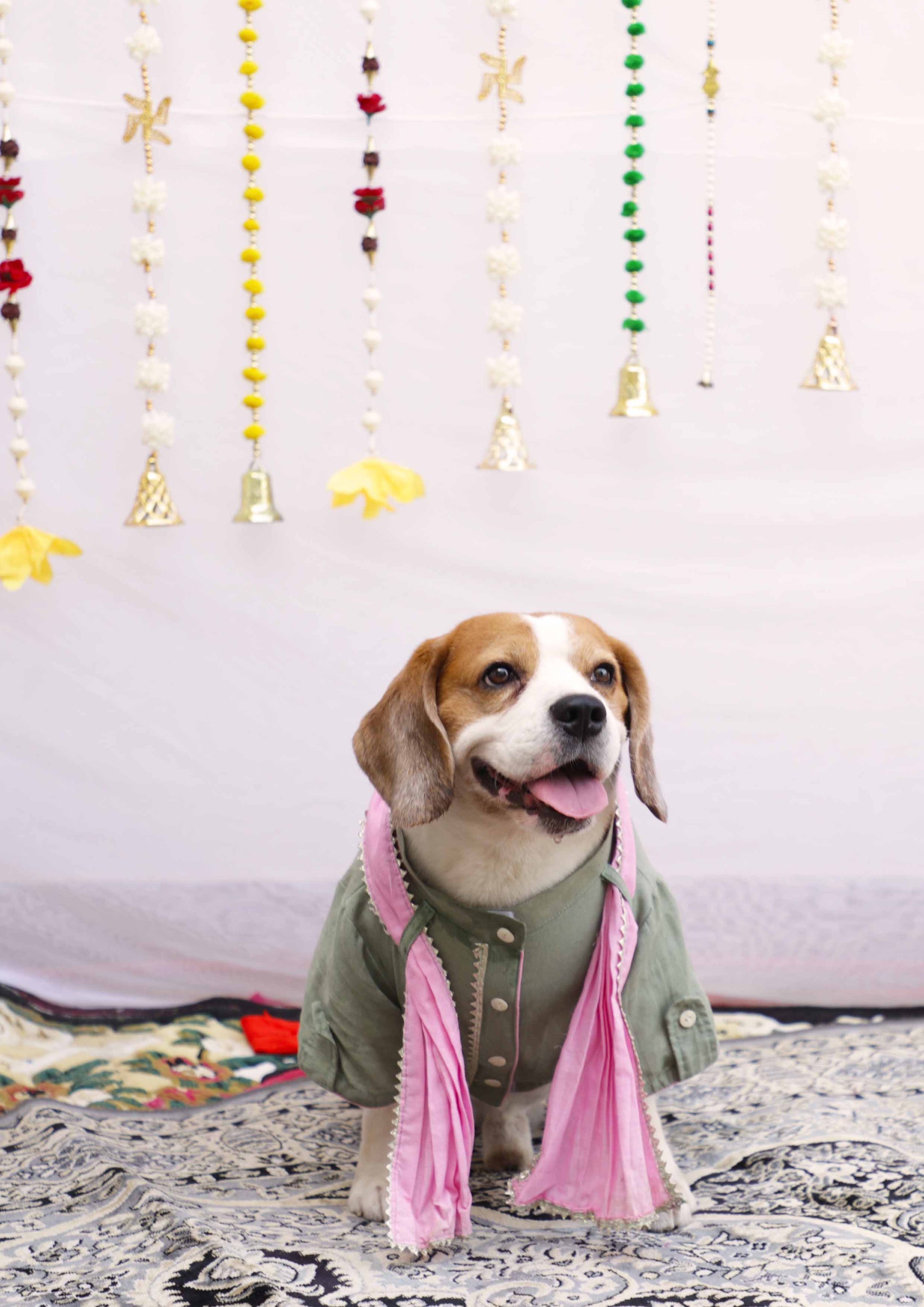 Our Pista Green Kurta with Contrasting Dupatta is a quintessentially Indian style wear that combines style and functionality for your canine companion's festivities!