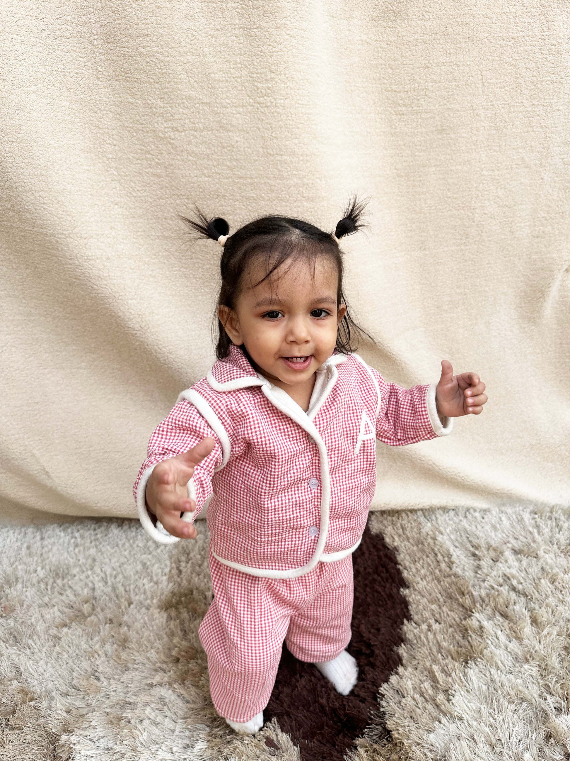 Red Checkered Co-ord set (customised Intial)
