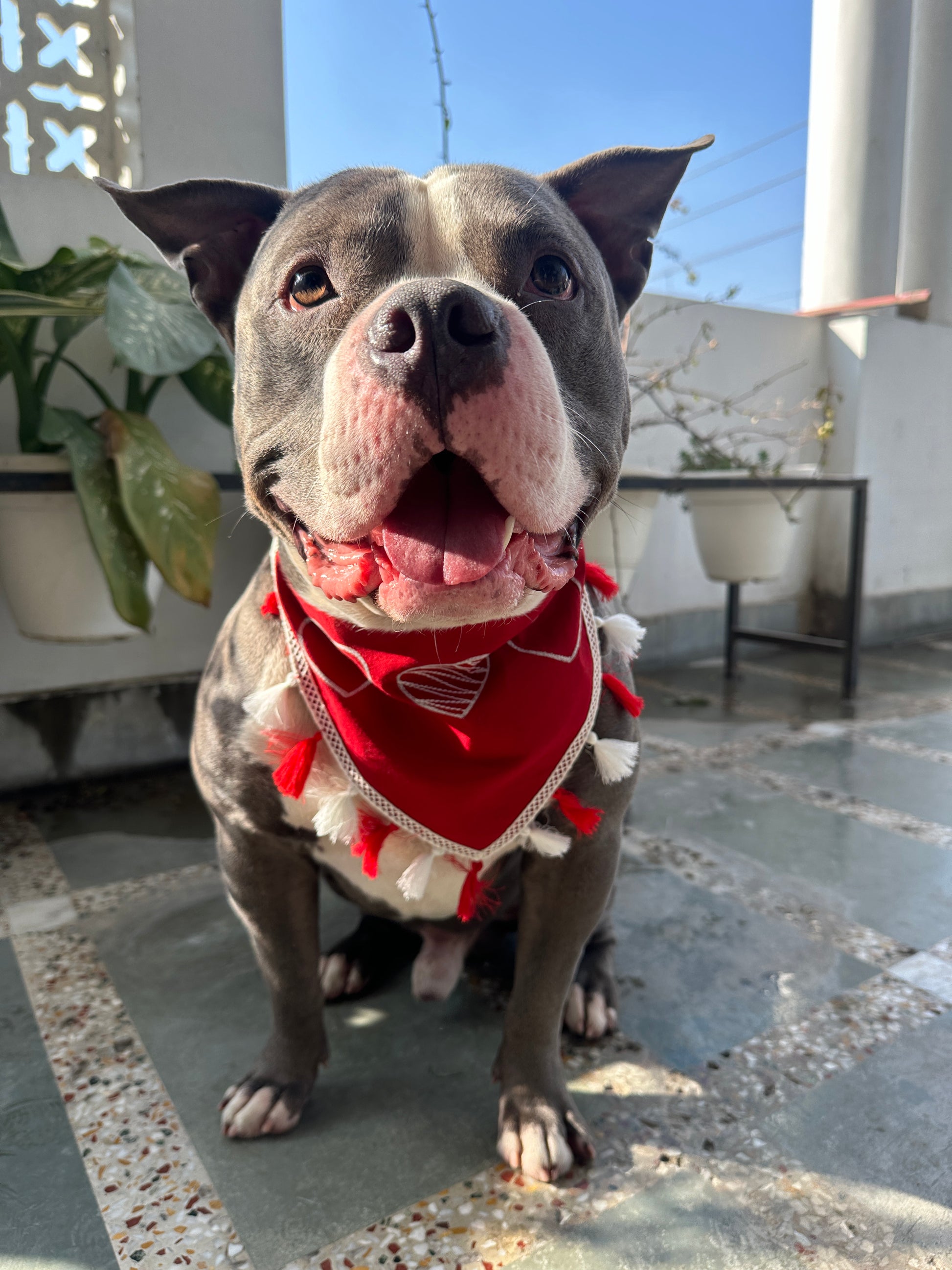 Introducing our regally stylish Red detachable bandana with tassels embroidery for dog! Crafted from breathable fabric, this bandana ensures your pup stays comfortable throughout the festivities.