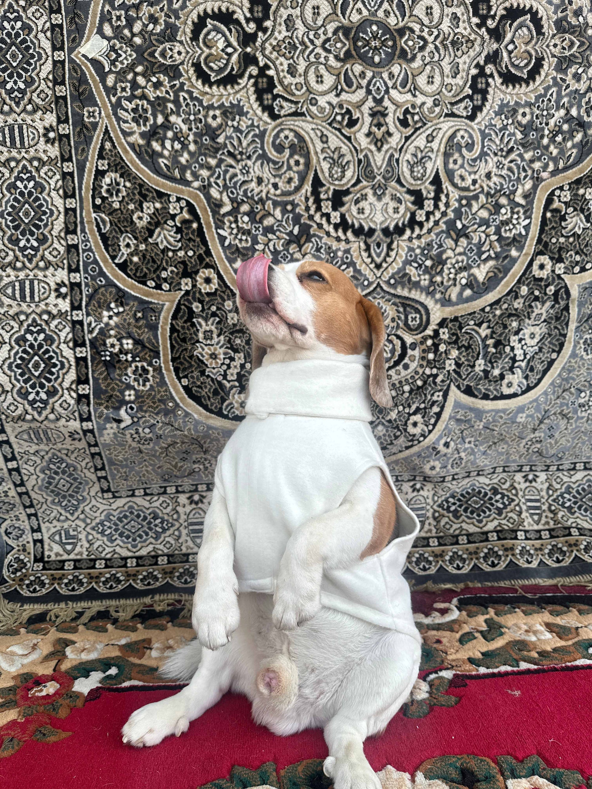 Keep your dog cozy with our White Sleeveless High-Neck Skeeve! Featuring an adorable paw pattern on the back, it’s made from warm, comfortable fabric for the cutest winter look.